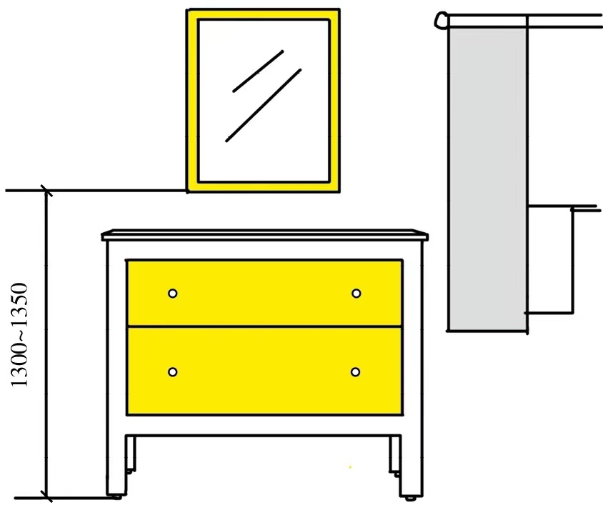 一般洗脸台的高度为800~1100mm,理想情况一般为900mm,这也是符合大多数人需求的标准尺寸