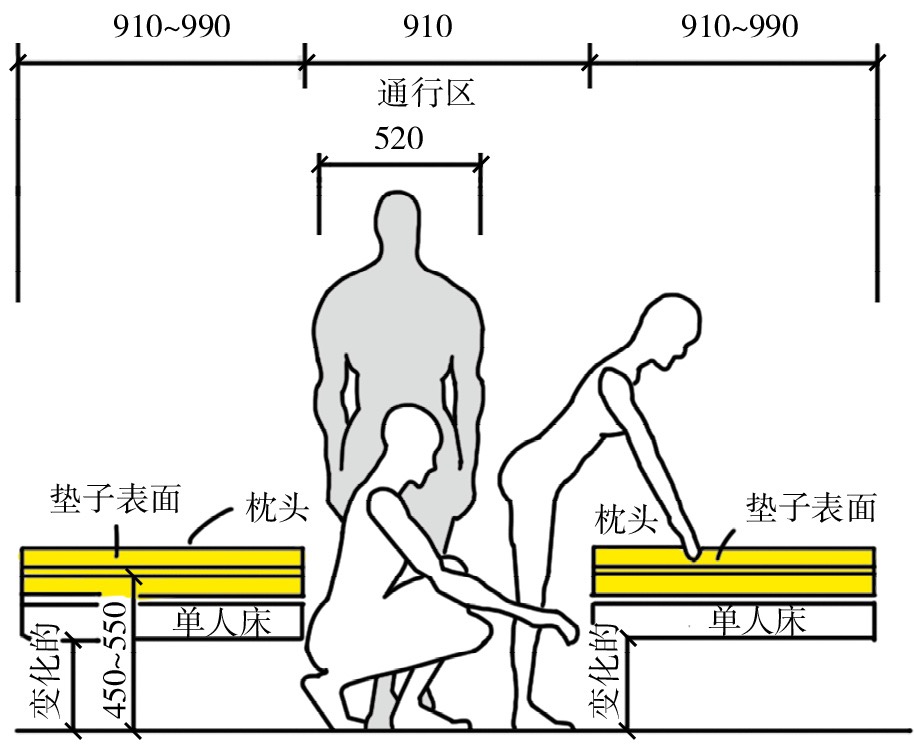 通行宽度可根据人流股数来确定,单股人流通过按照520mm计算,若是有搬运东西需要的通道,最好能够留出800mm甚至900mm以上的空间